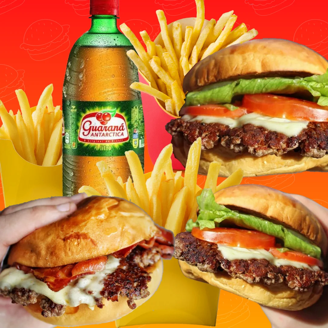 Escolha 3 Burger + 3 Batata Frita + 1 Refri 1 L