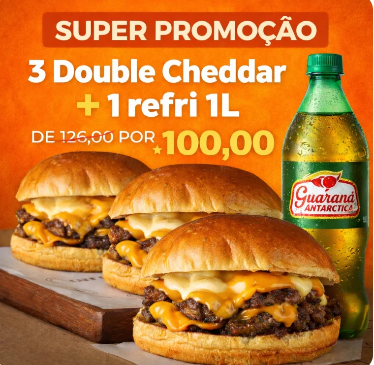 São 3 lanches DOUBLE CHEDDAR + 1 Refrigerante de 1 Litro !